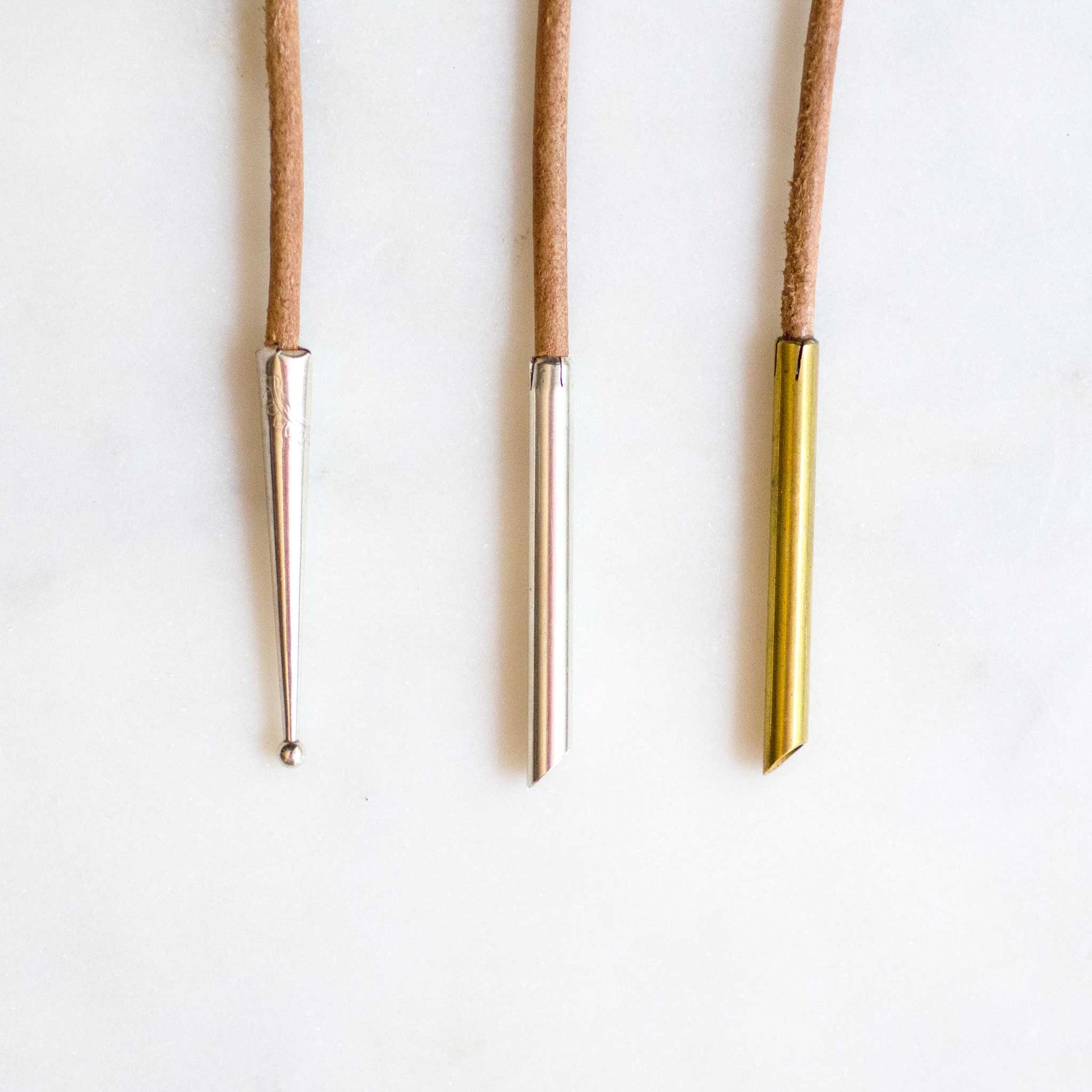Cord: 38" natural undyed leather with sterling silver tips